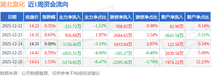 资金流向数据方面,本周湖北宜化主力资金合计净流出7561.39万元,游资资金合计净流入1532.67万元,散户资金合计净流入6028.72万元。本周资金流向一览见下表: